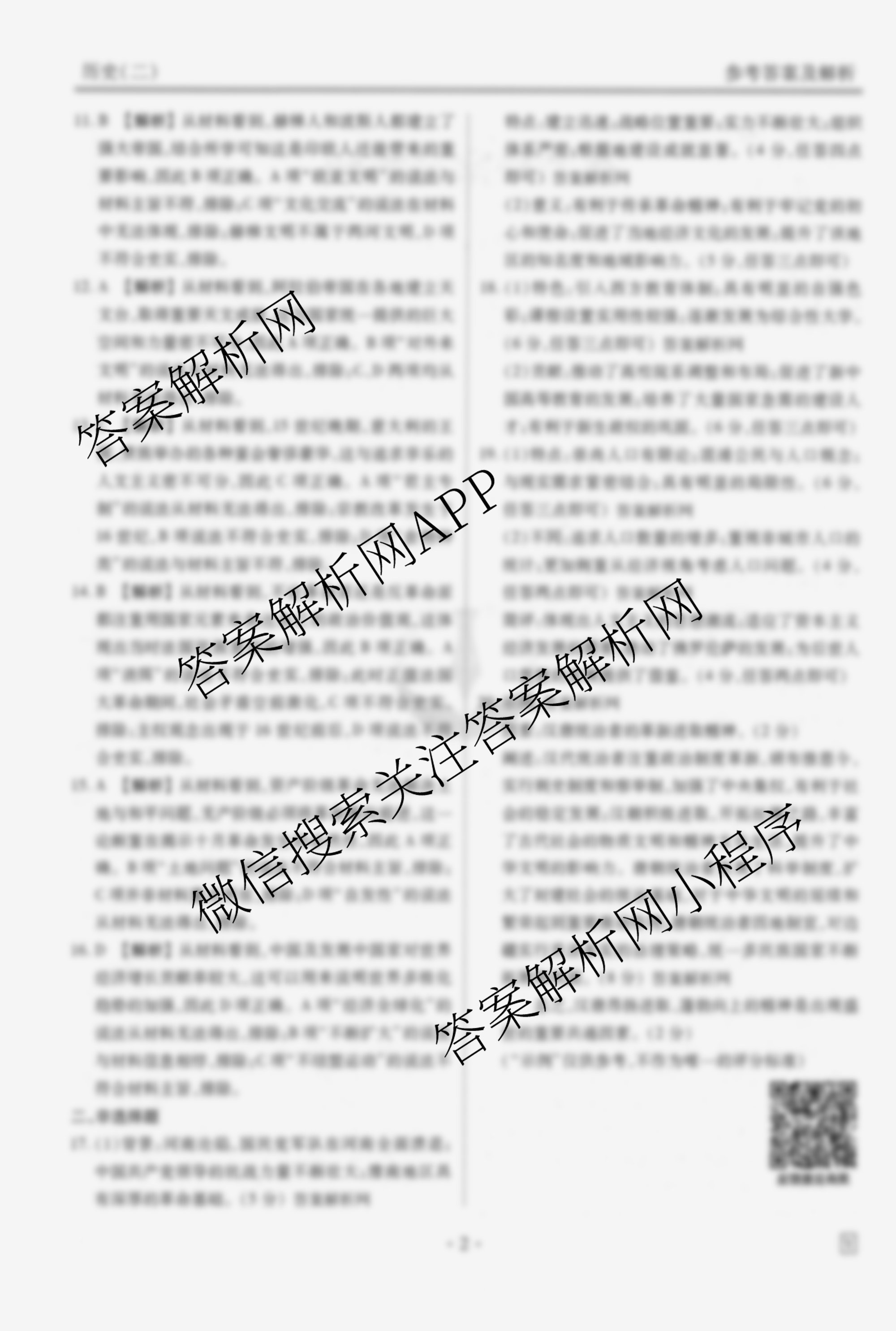 - [高三](衡水金卷先享题)·调研卷·2026年普通高中学业水平选择性考试模拟试题(二)2历史(AH)答案
