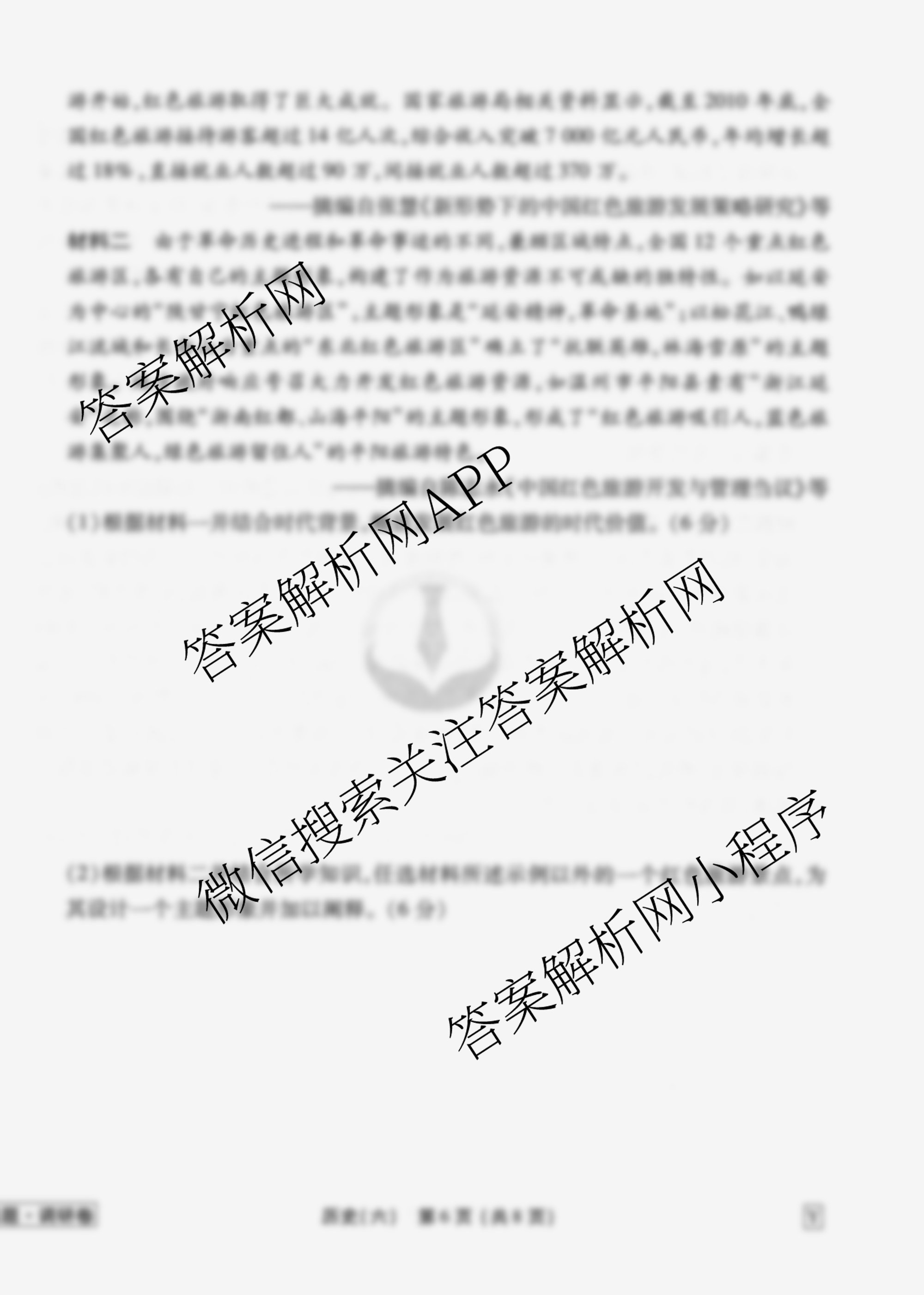 - (衡水金卷先享题)·调研卷·2026年普通高中学业水平选择性考试模拟试题(六)6历史(GD)答案