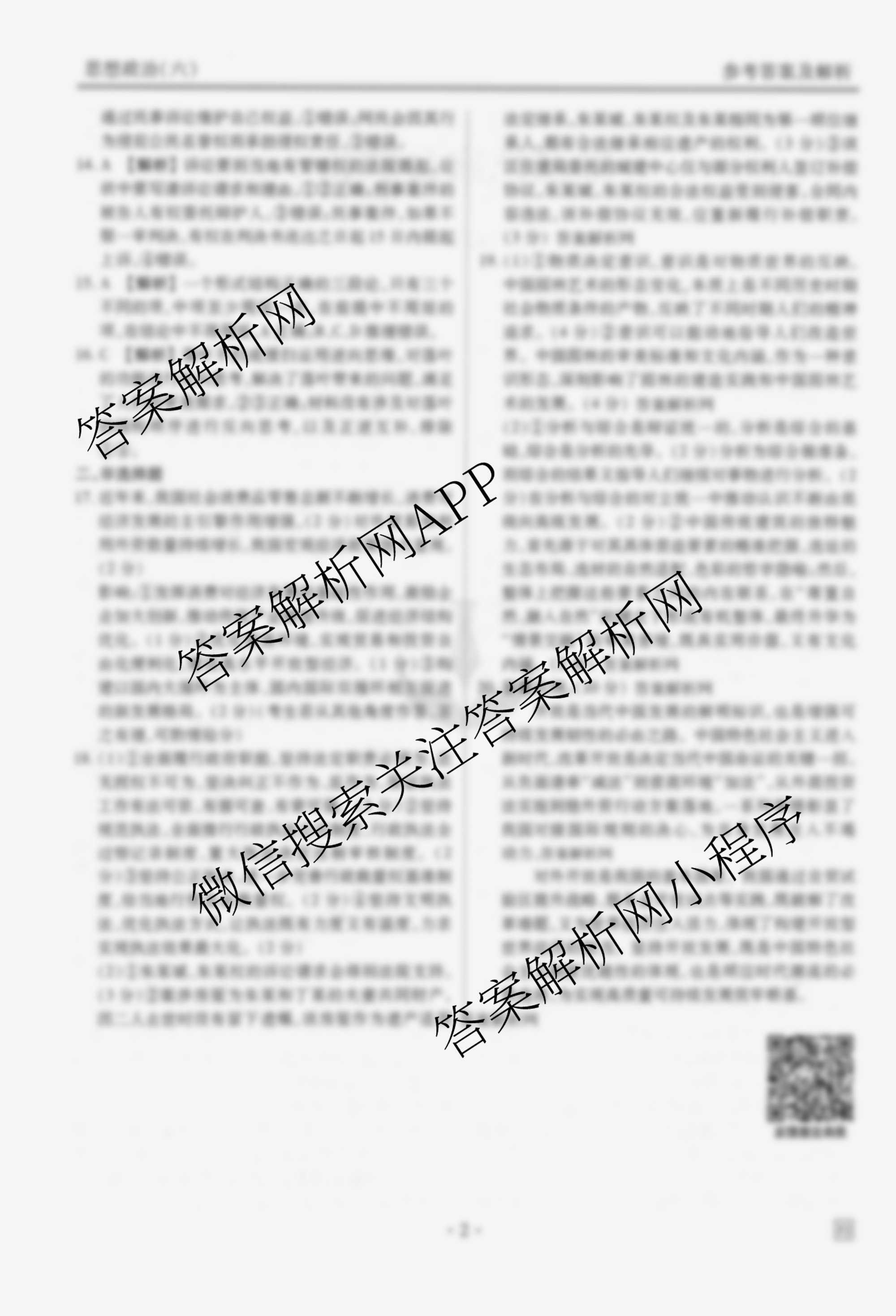 - [衡水金卷先享题]·调研卷·2026年普通高中学业水平选择性考试模拟试题(六)6政治(AH)答案