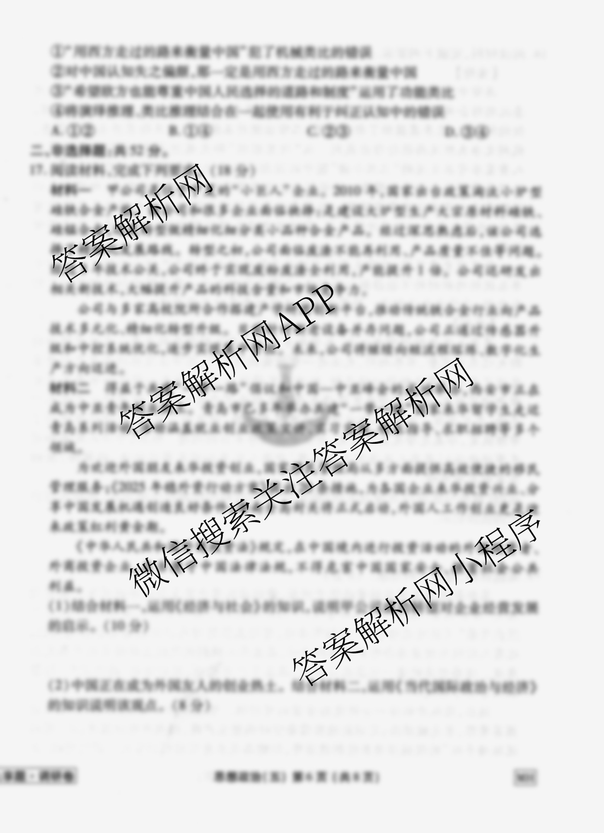 - (衡水金卷先享题)调研卷2026年普通高中学业水平选择性考试模拟试题(五)5政治(CY)答案