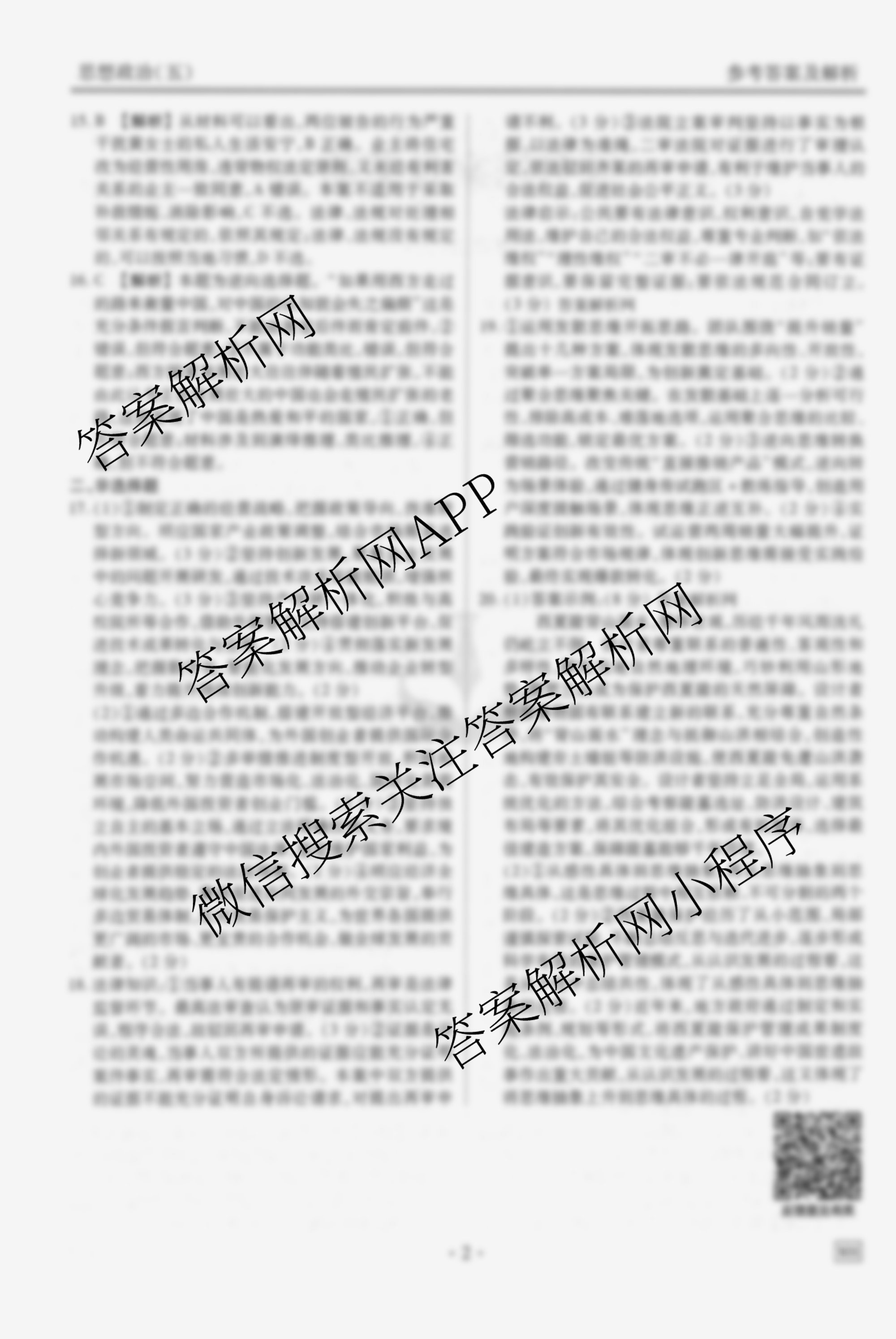- (衡水金卷先享题)·调研卷·2026年普通高中学业水平选择性考试模拟试题(五)5政治(AH)答案