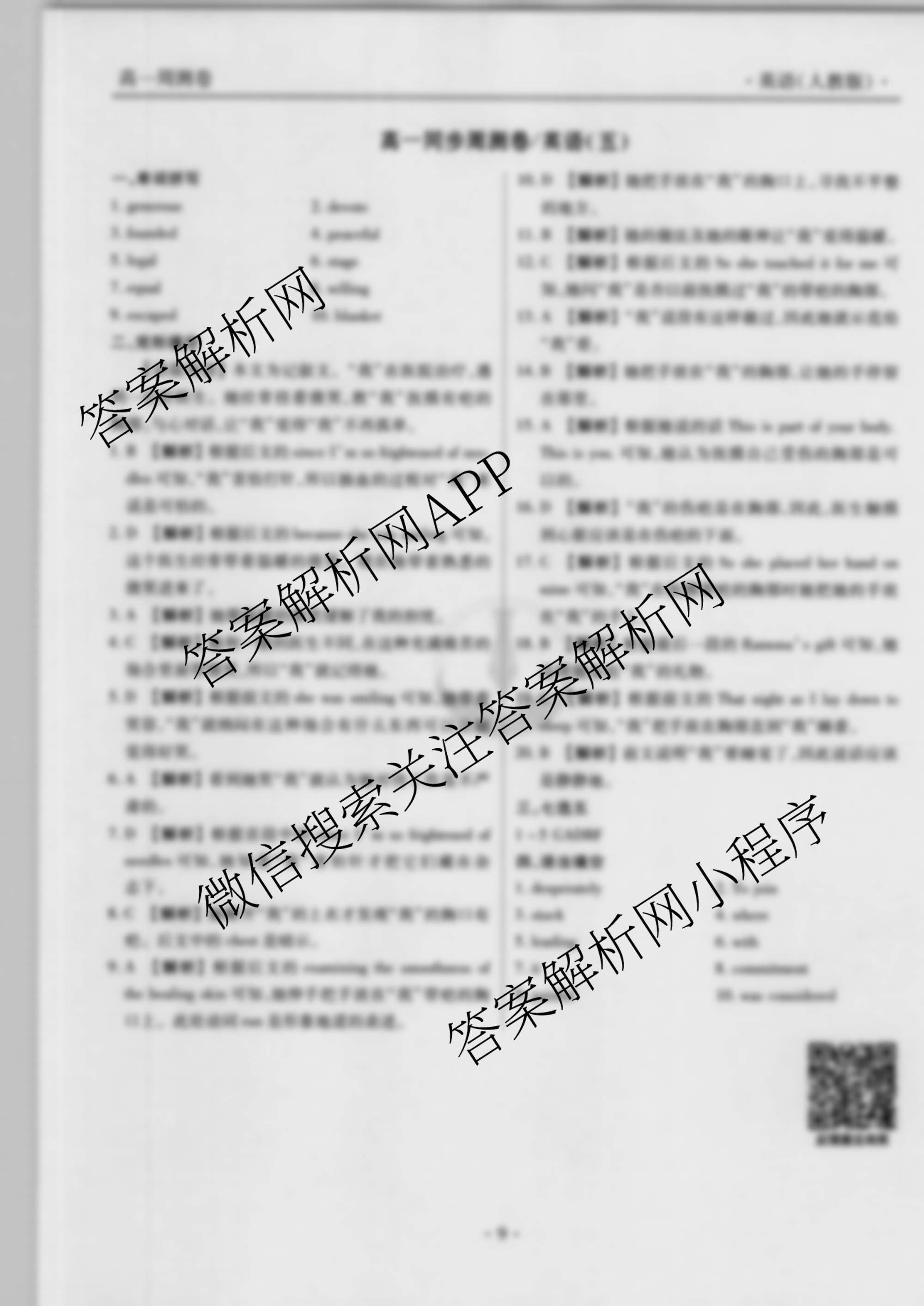 2021-2022衡水金卷先享题高一同步周测卷英语人教版(五)5答案