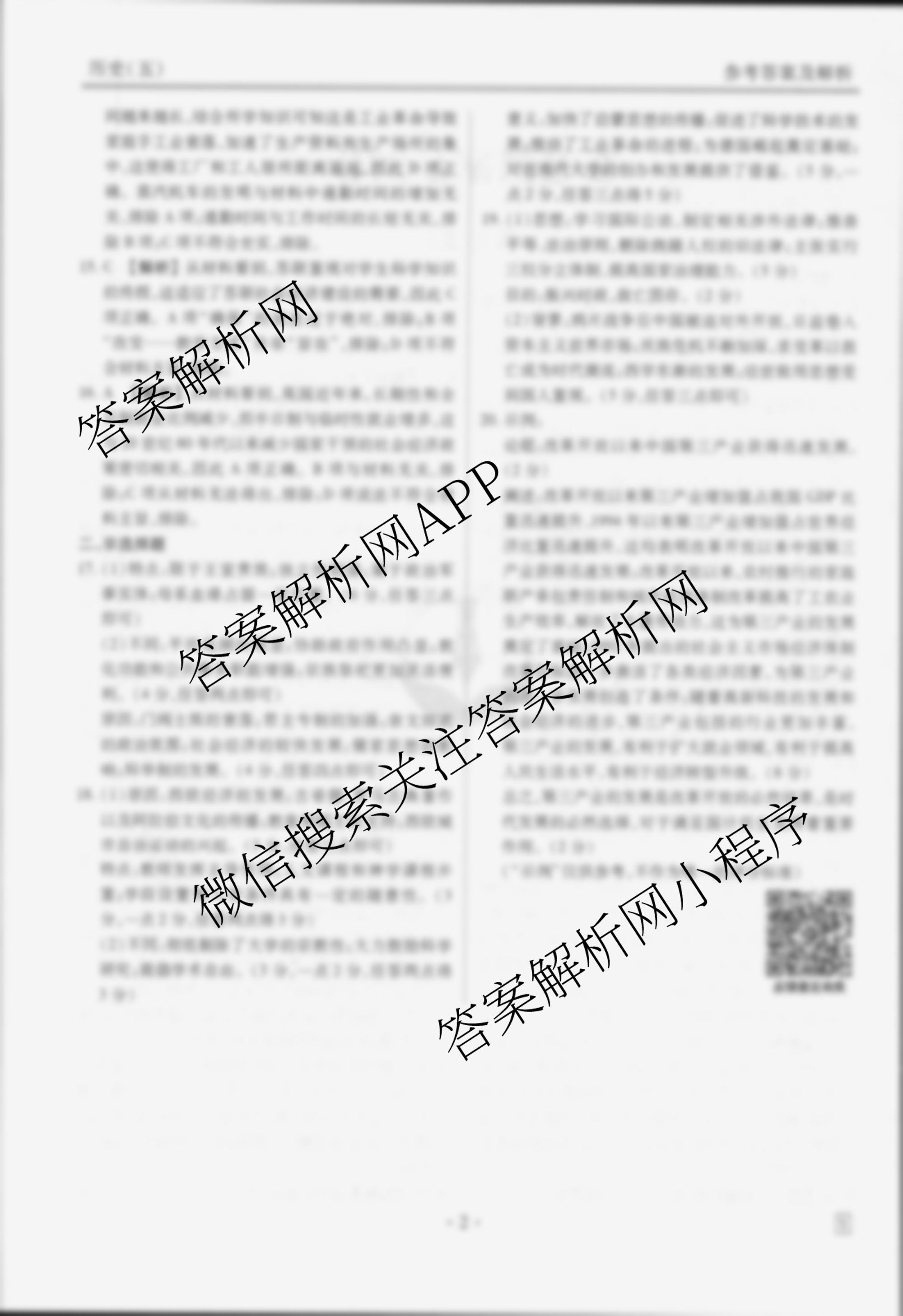 衡水金卷先享题调研卷 2025年普通高中学业水平选择性考试模拟试题 历史(Y)(五)5答案