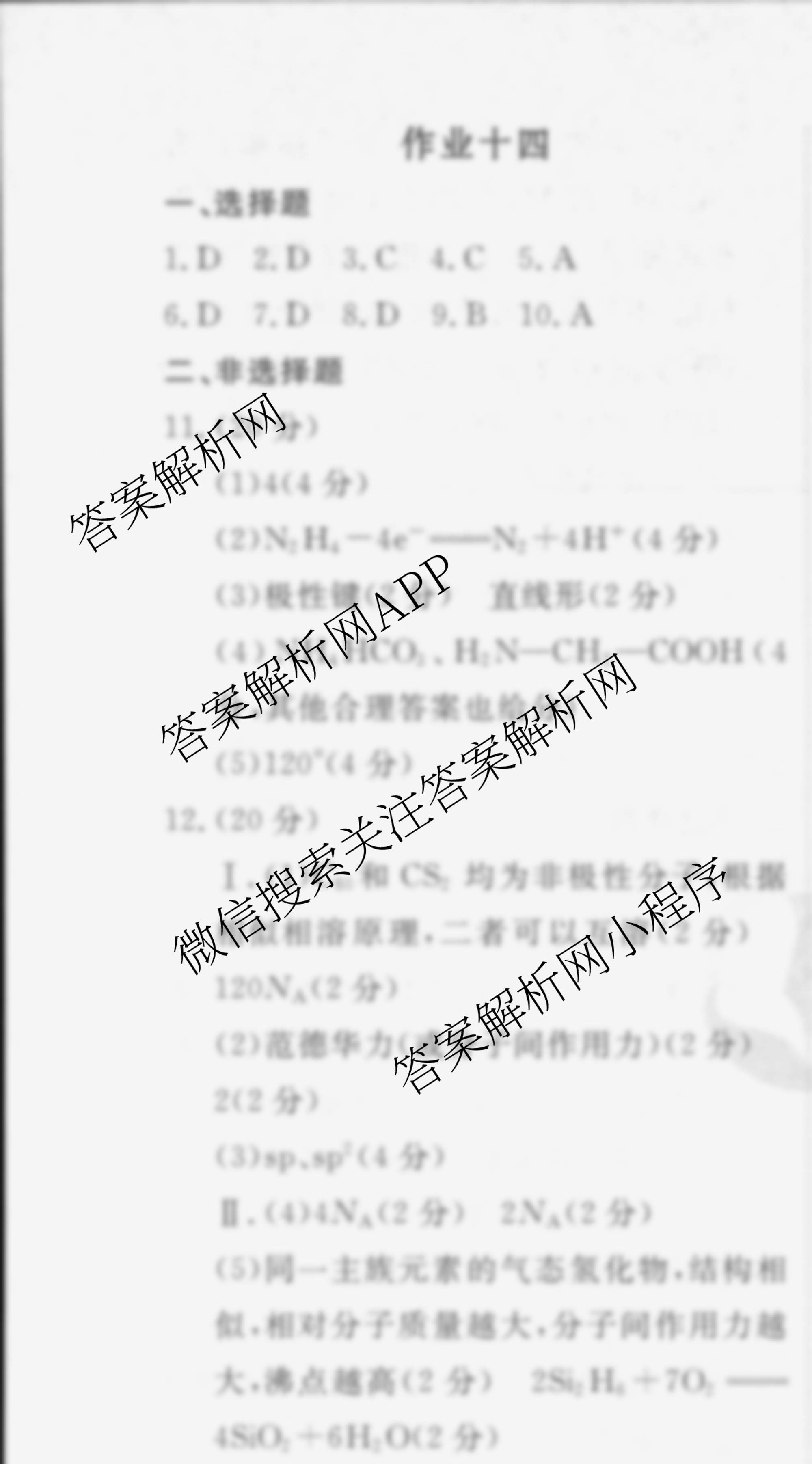 衡水金卷先享题2024-2025学年度高二寒假作业 化学 作业十四答案