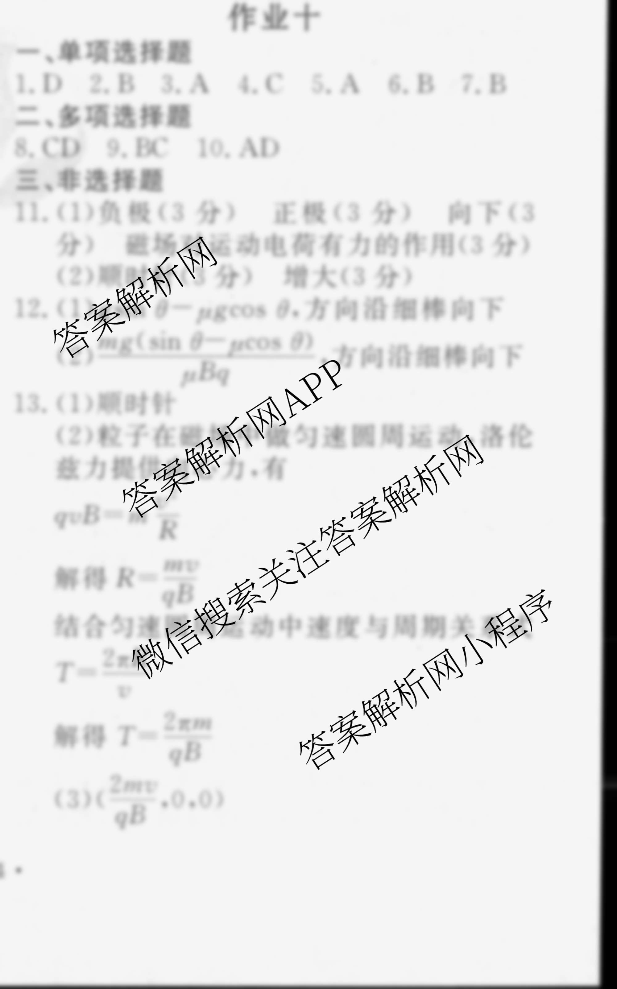 衡水金卷先享题2024-2025学年度高二寒假作业 物理 作业十答案