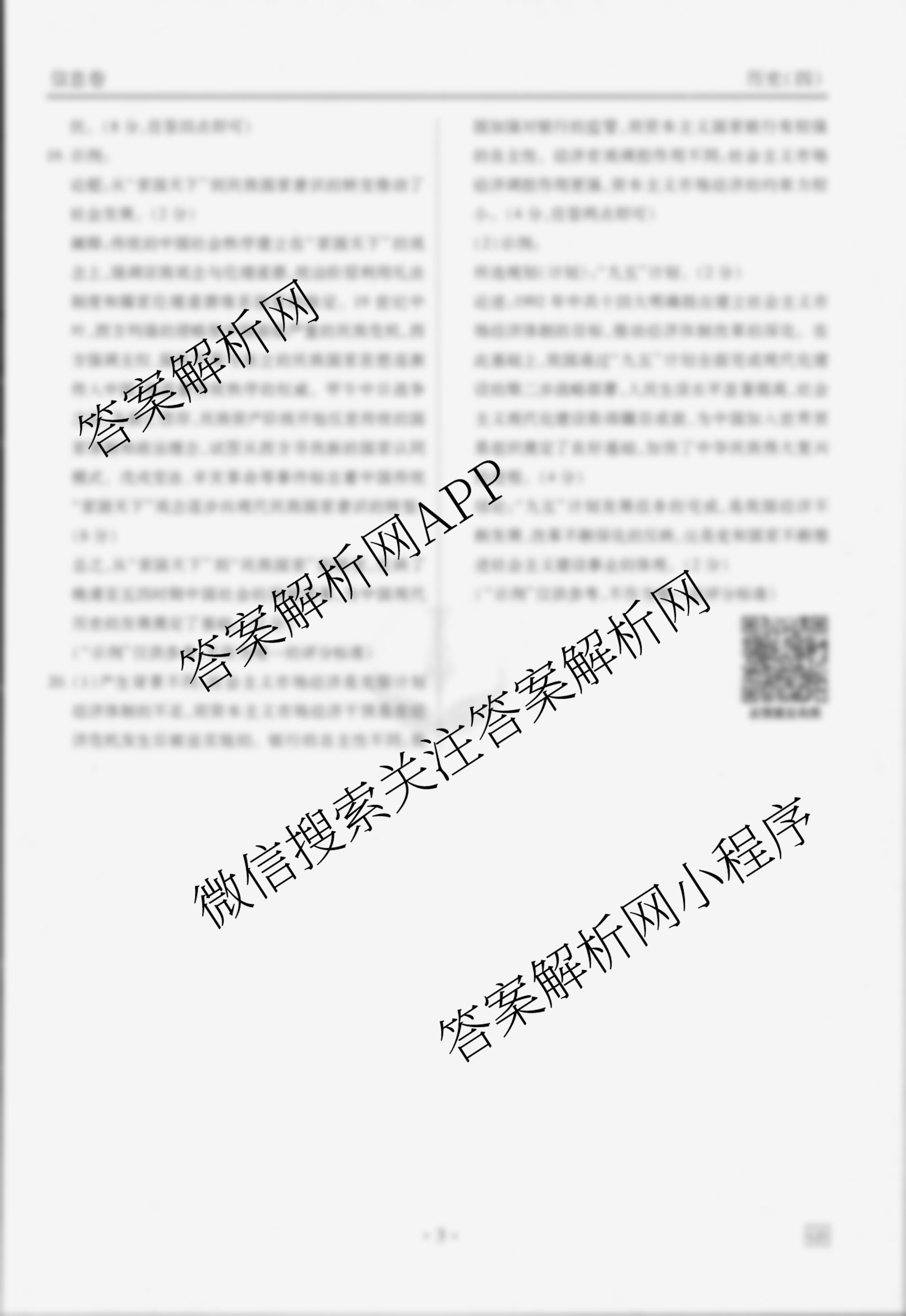 衡水金卷先享题调研卷 2025年普通高中学业水平选择性考试模拟试题(四)4历史(GD)答案