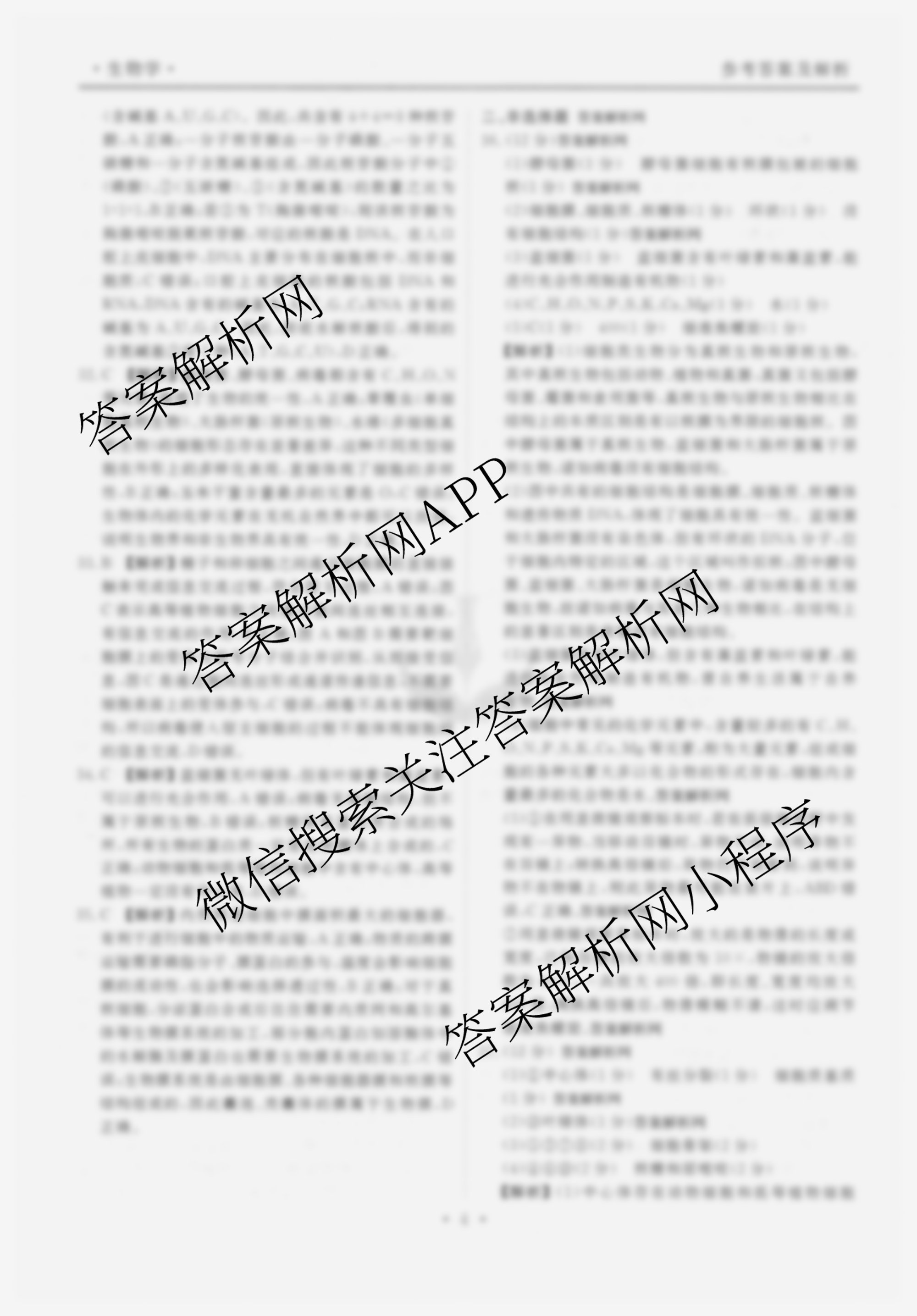 - [衡水金卷先享题]·月考卷·2025~2026学年度上学期(高一)年级期中考试生物答案