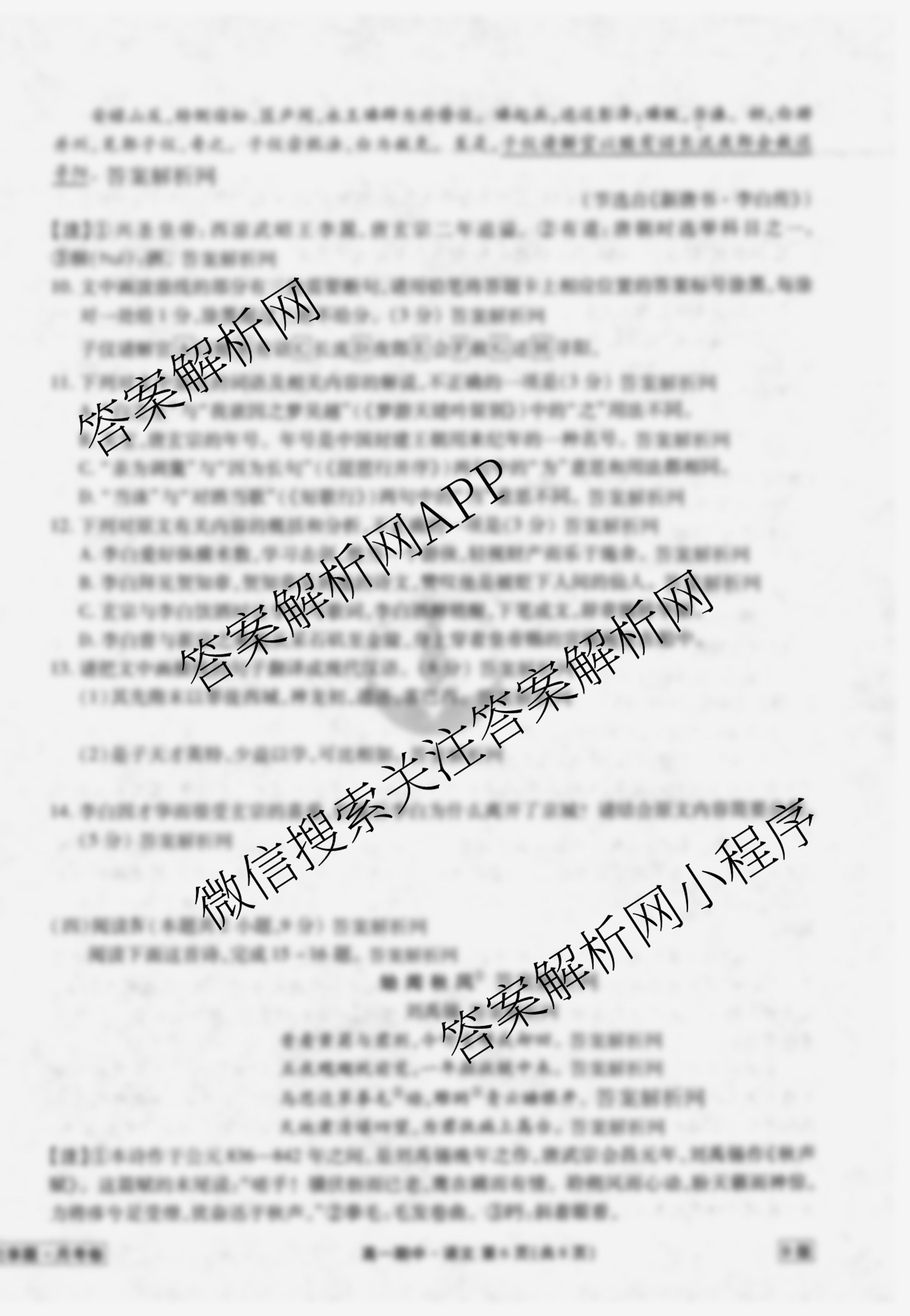 - (衡水金卷先享题)月考卷2025~2026学年度上学期高一年级期中考试语文(B版)答案