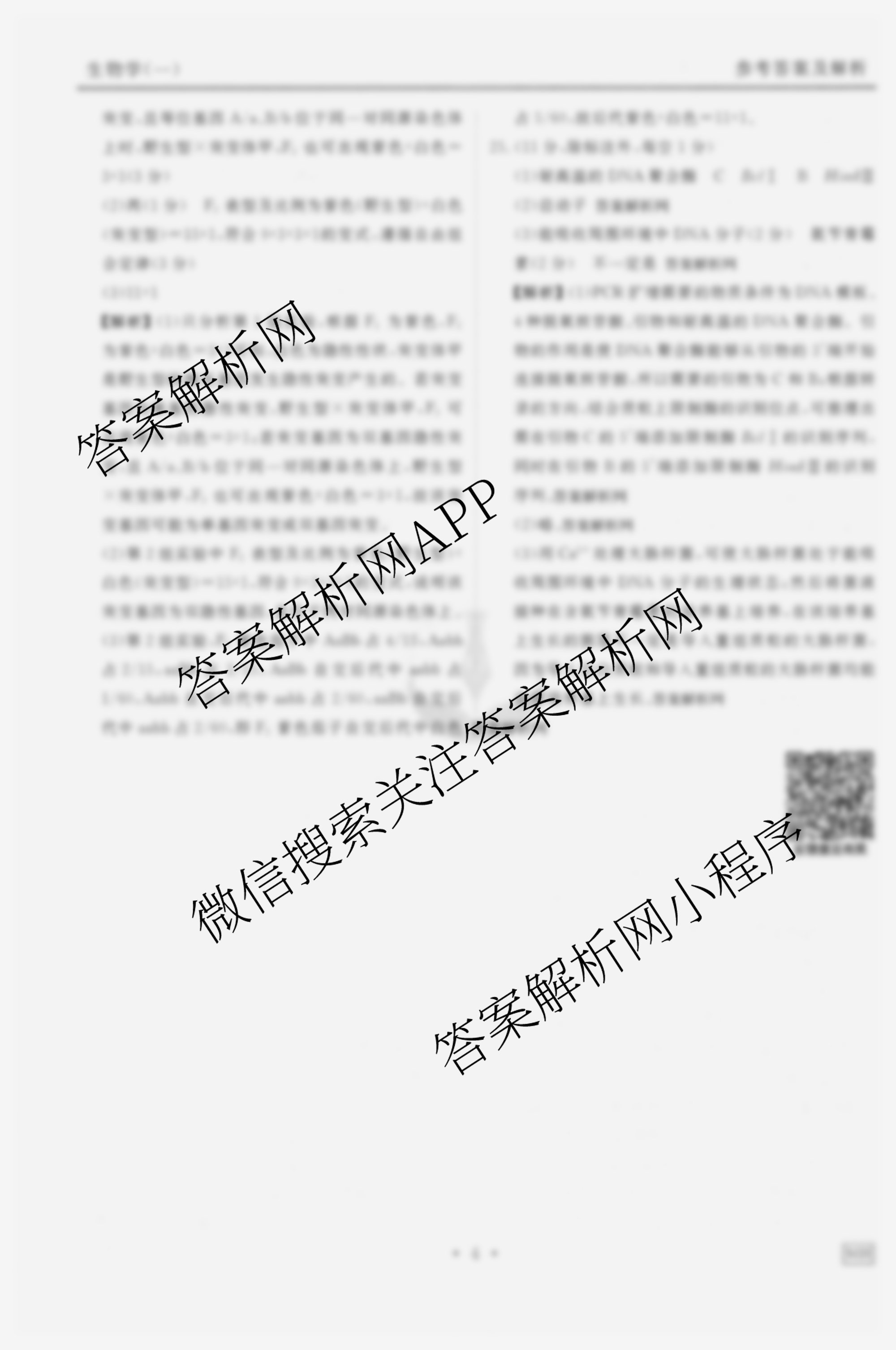 - [高三](衡水金卷先享题)·夯基卷 2026年普通高中学业水平选择性考试模拟试题(一)1生物(MH)答案