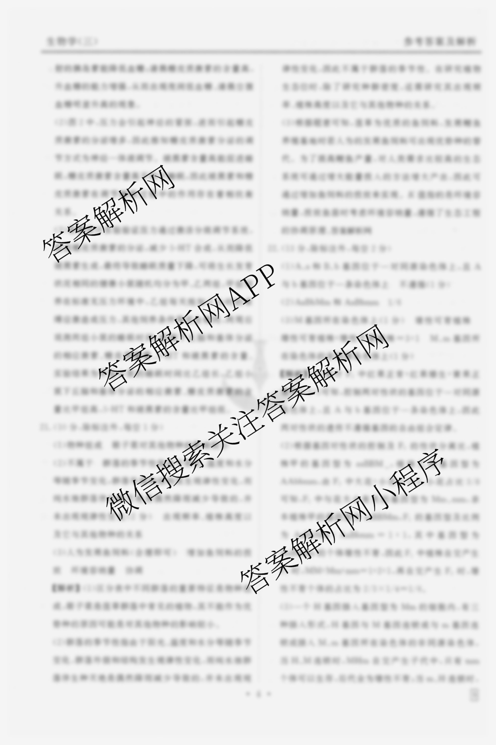 - [高三]衡水金卷先享题夯基卷 2026年普通高中学业水平选择性考试模拟 生物(三)3答案