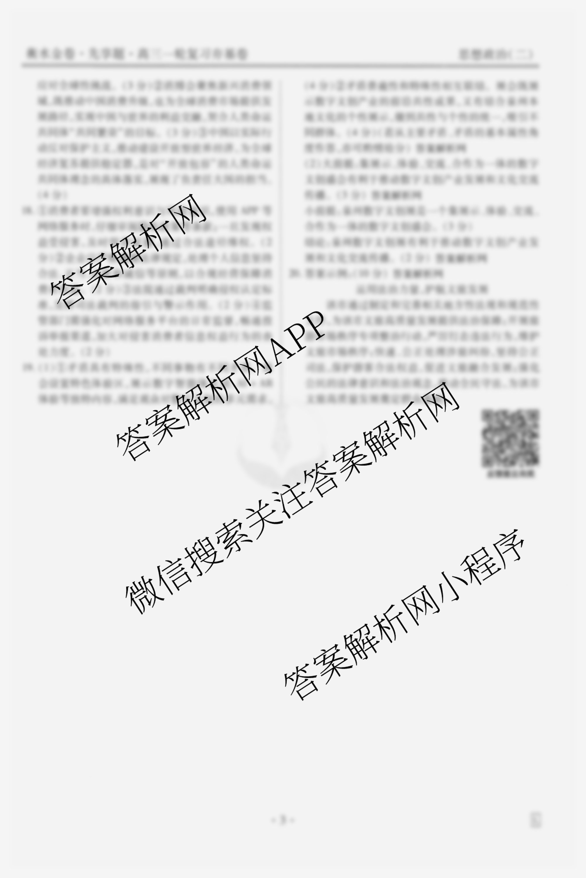 - [高三][衡水金卷先享题]夯基卷 2026年普通高中学业水平选择性考试模拟(二)2政治(W)答案