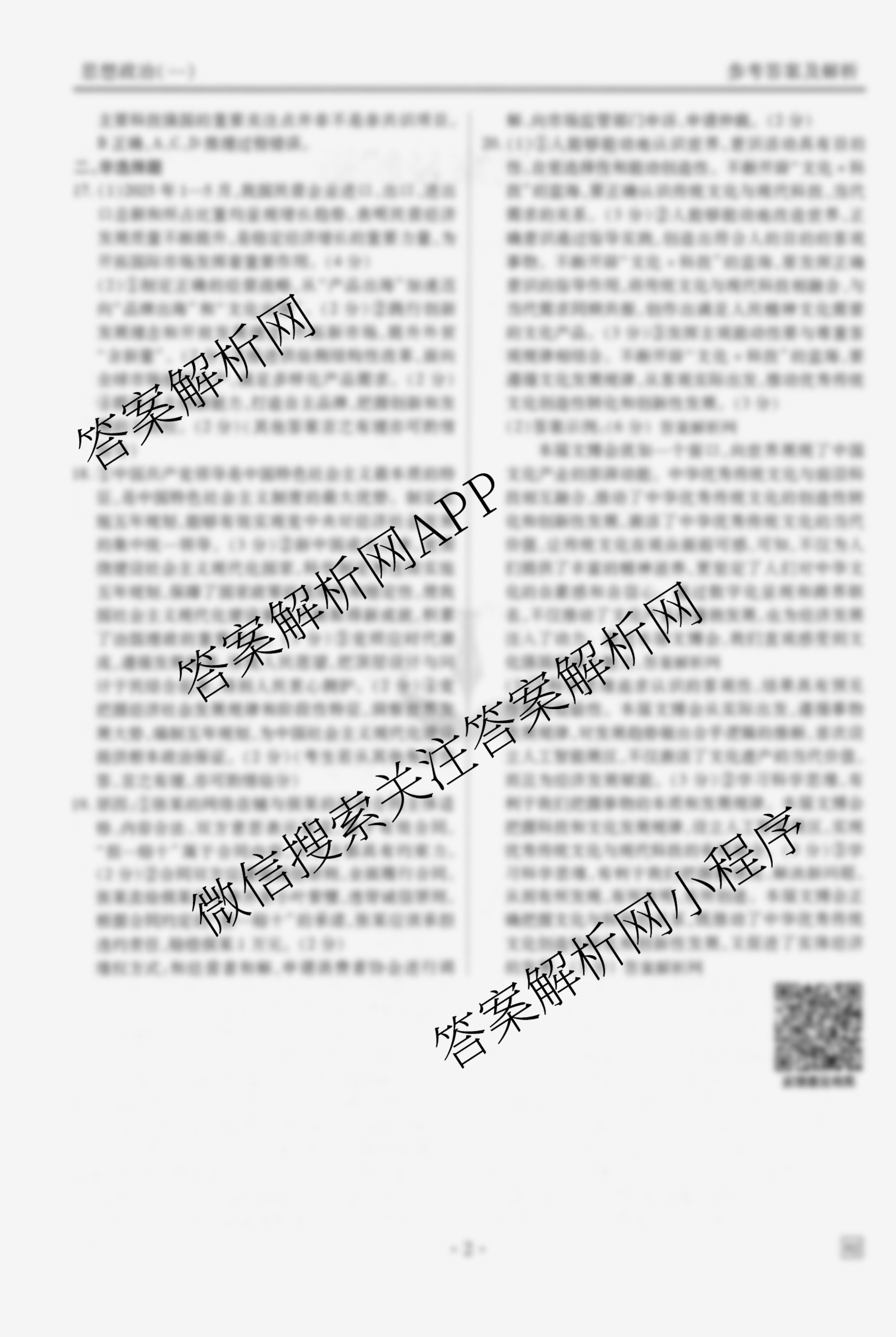 - (高三)[衡水金卷先享题]·调研卷·2026年普通高中学业水平选择性考试模拟试题(一)1政治(AH)答案