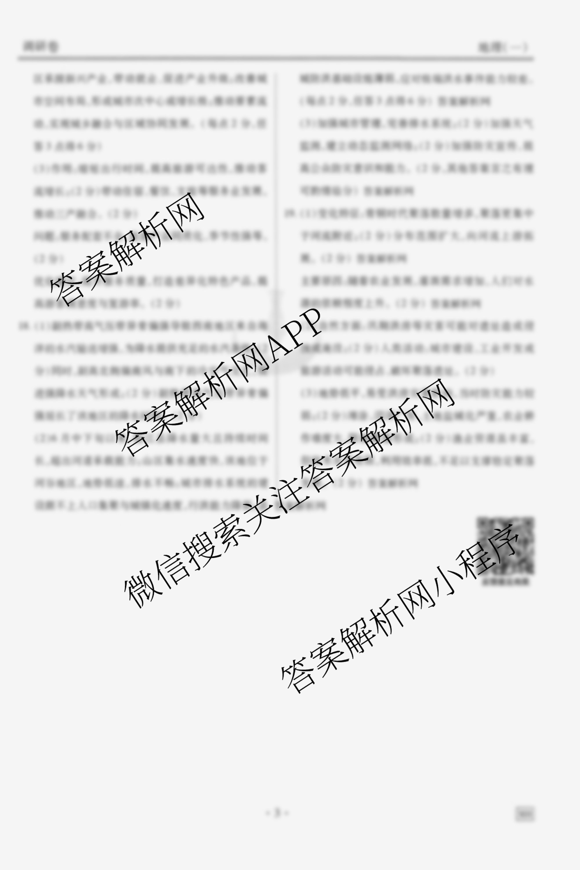 - [高三]衡水金卷先享题调研卷2026年普通高中学业水平选择性考试模拟试题(一)1地理(HN)答案