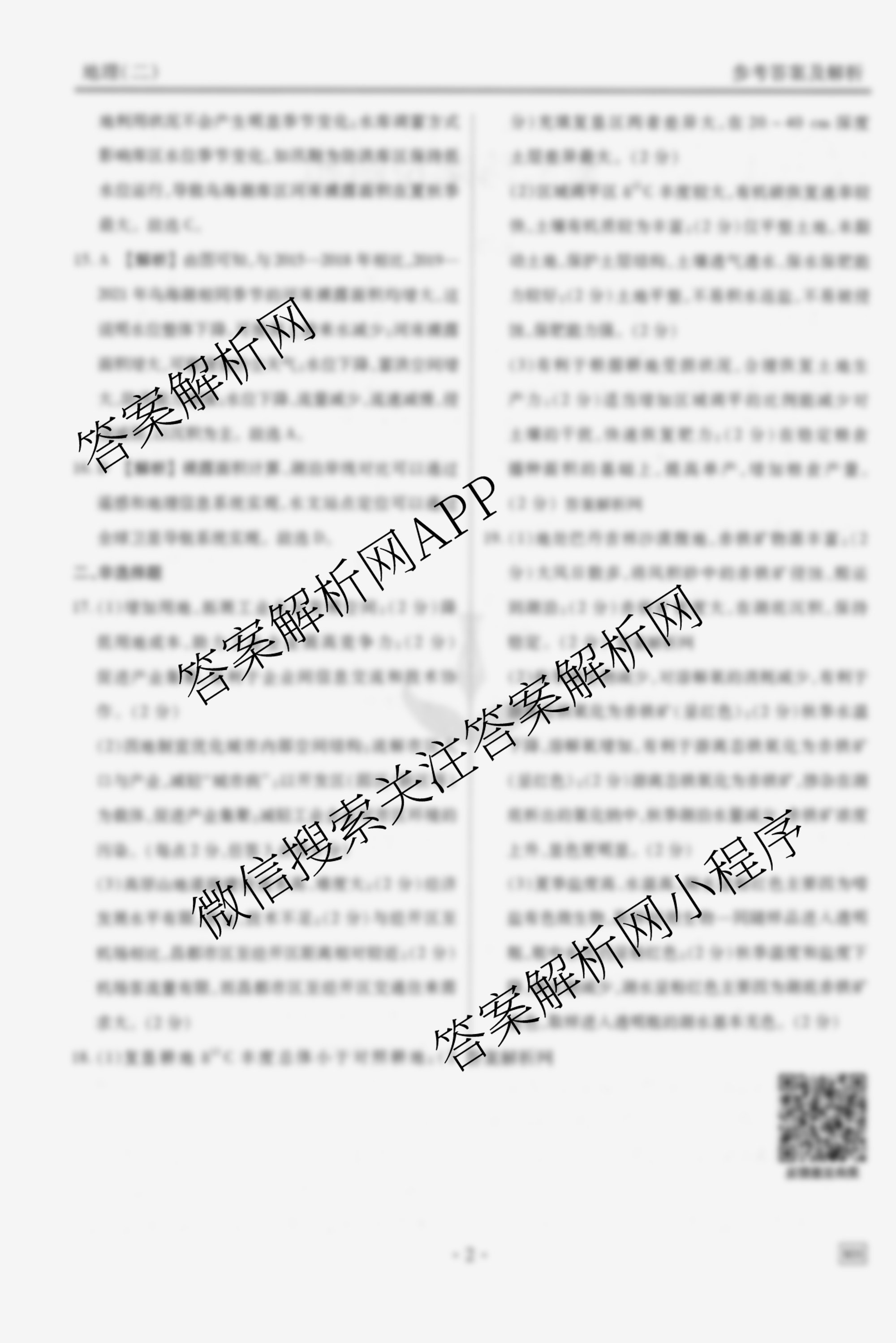 - [高三](衡水金卷先享题)调研卷2026年普通高中学业水平选择性考试模拟试题(二)2地理(Q)答案