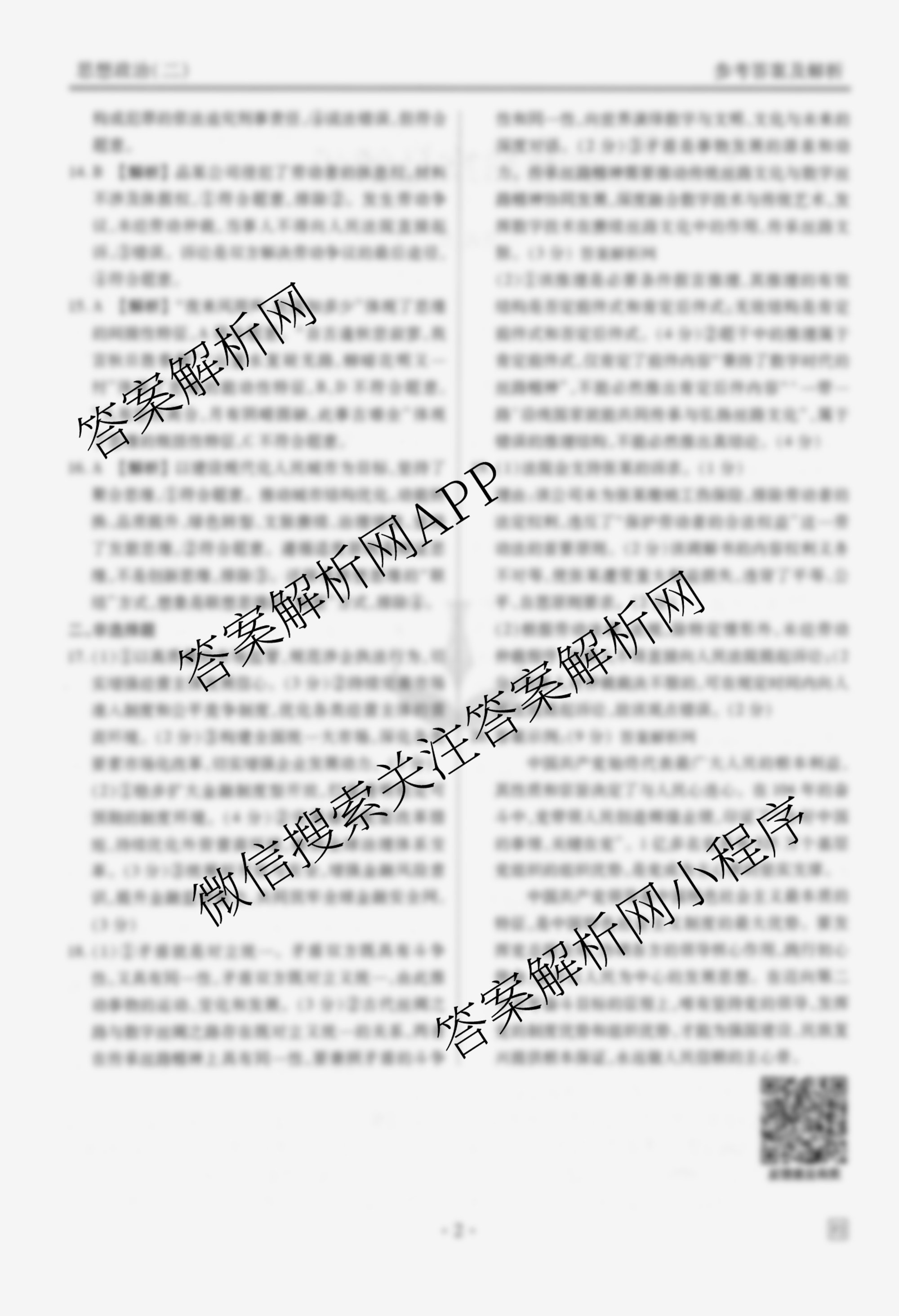 - 高三(衡水金卷先享题)调研卷2026年普通高中学业水平选择性考试模拟试题(二)2政治(AH)答案