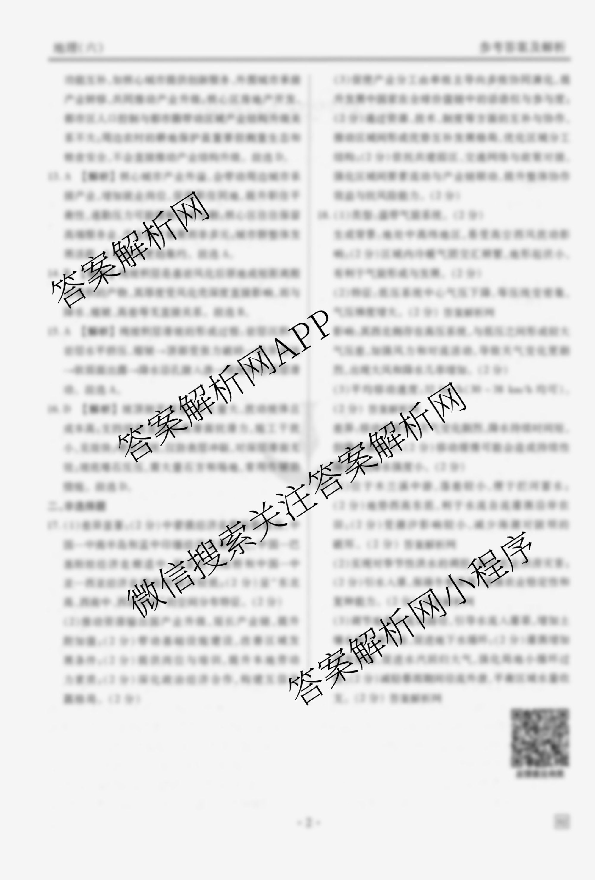 - [高三](衡水金卷先享题)调研卷2026年普通高中学业水平选择性考试模拟试题(六)6地理(HJ)答案