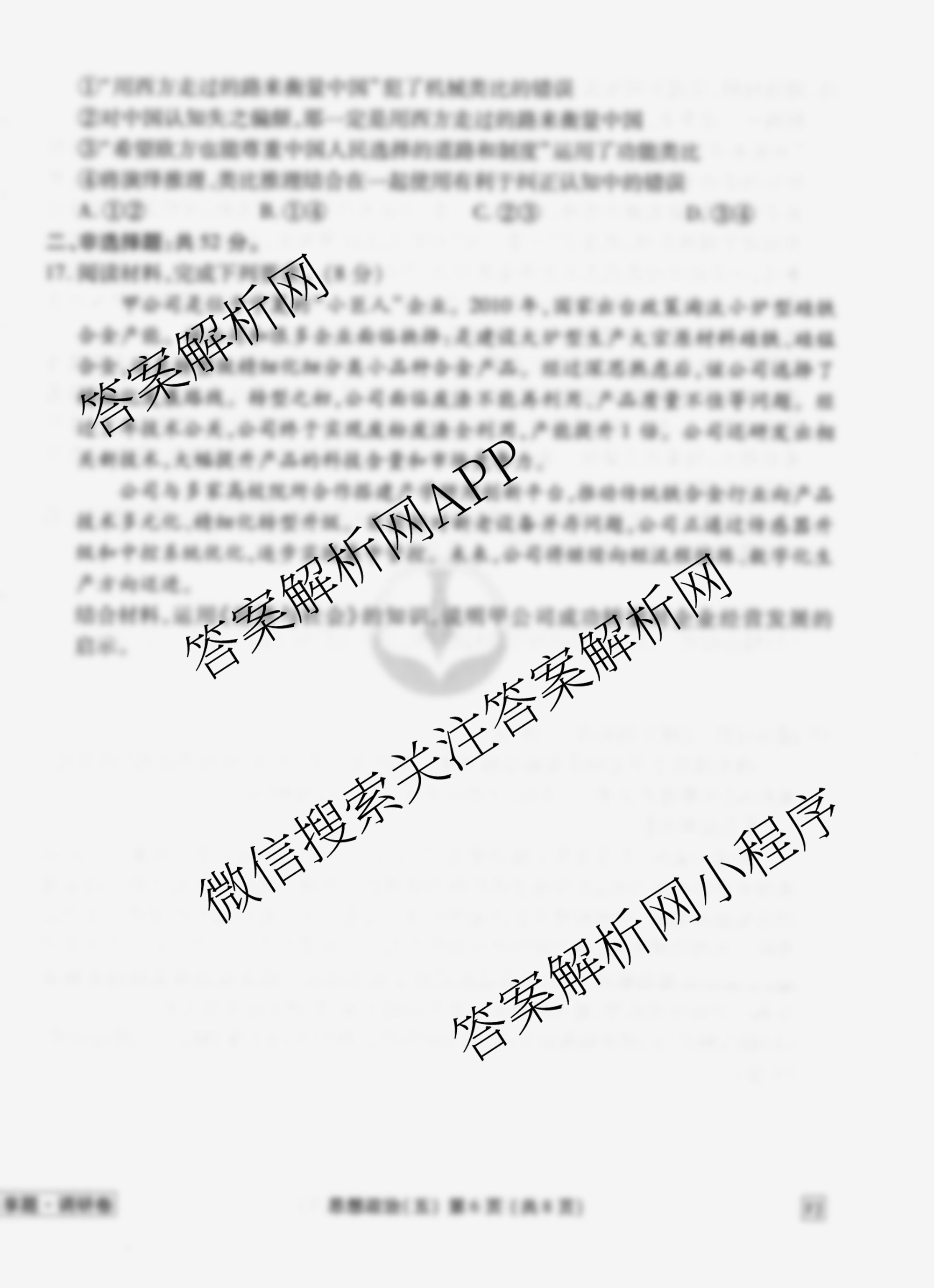 - (衡水金卷先享题)·调研卷·2026年普通高中学业水平选择性考试模拟试题(五)5政治(AH)答案