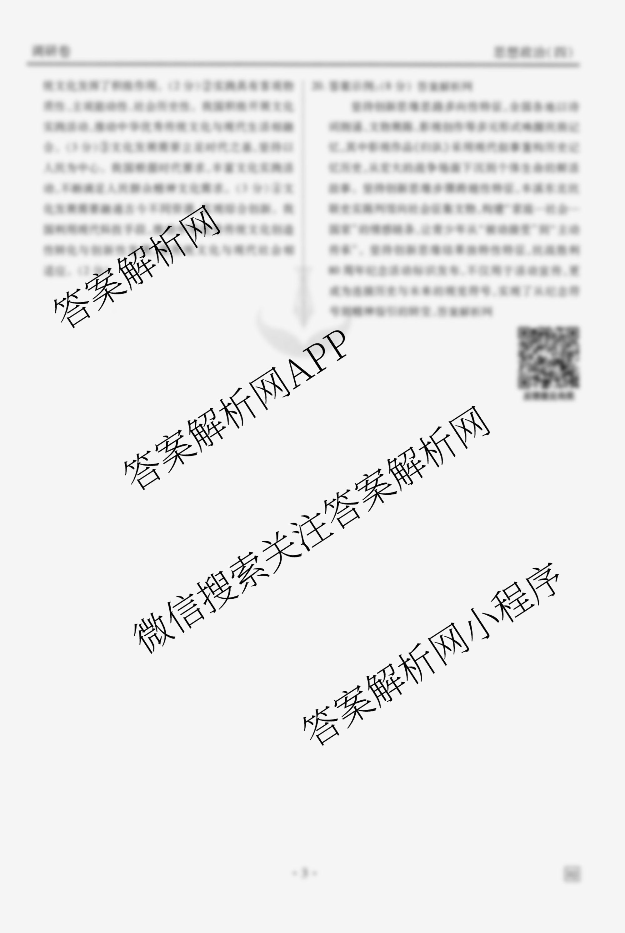 - [高三][衡水金卷先享题]·调研卷·2026年普通高中学业水平选择性考试模拟试题(四)4政治(AH)答案