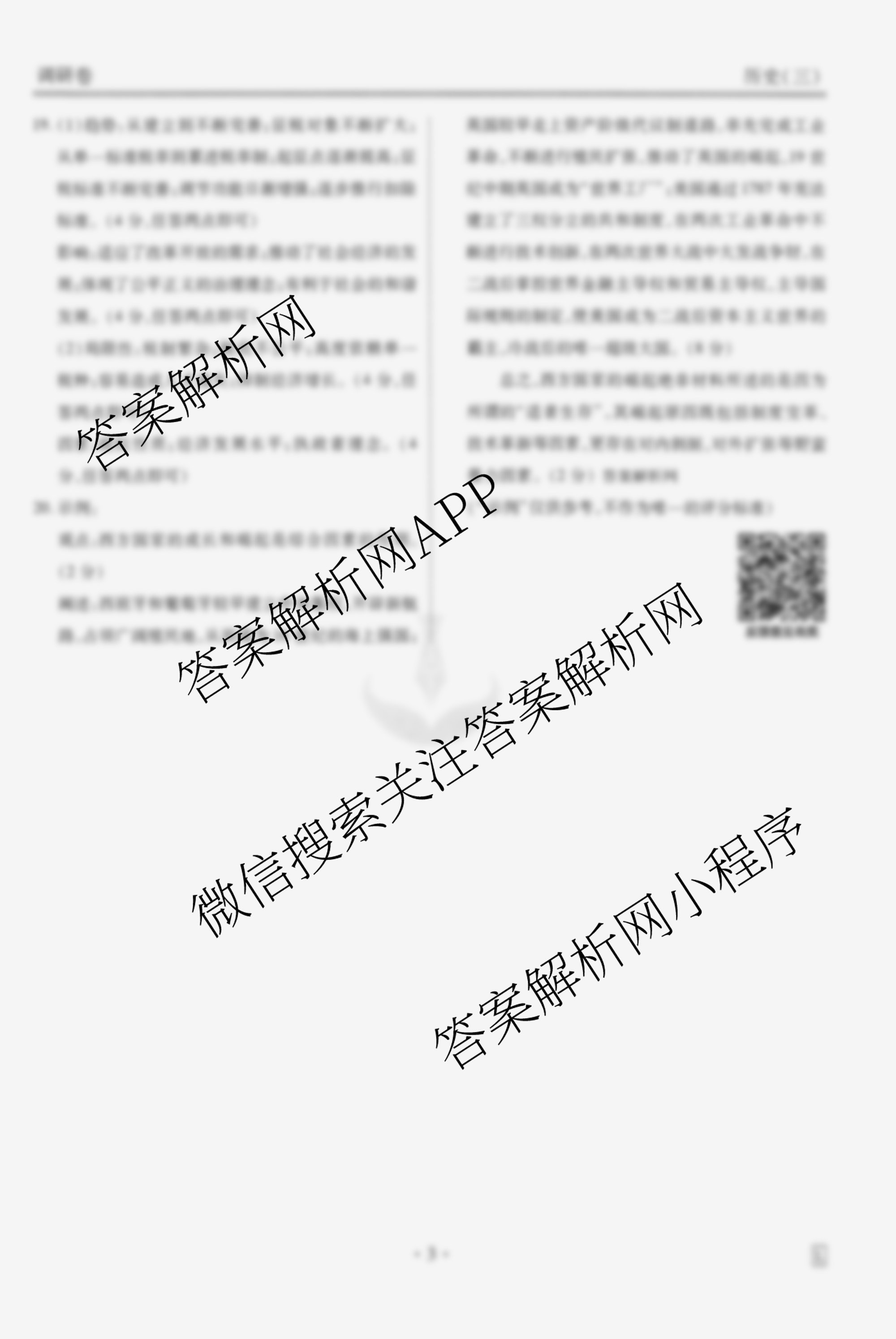 - [衡水金卷先享题]调研卷2026年普通高中学业水平选择性考试模拟试题(三)3历史(HN)答案