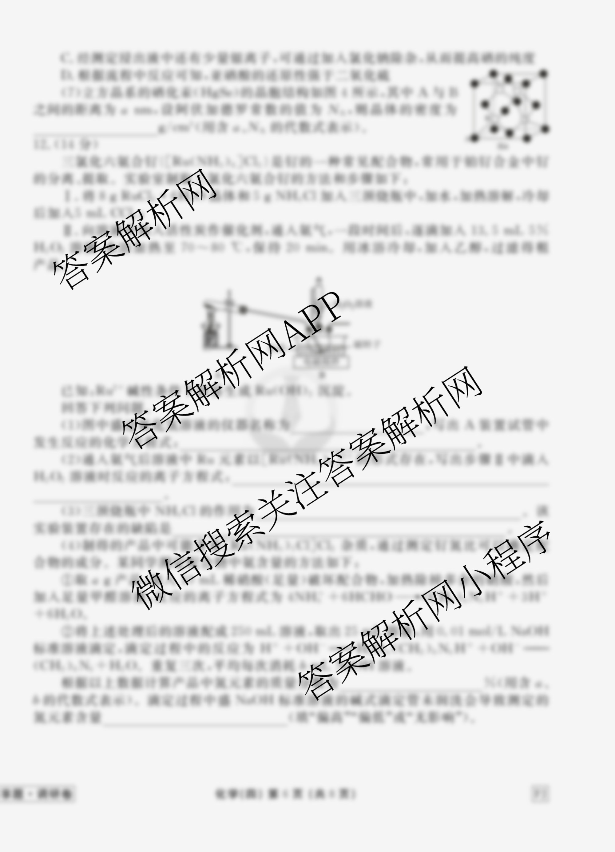 - (高三)衡水金卷先享题调研卷2026年普通高中学业水平选择性考试模拟试题(四)4化学(HN)答案