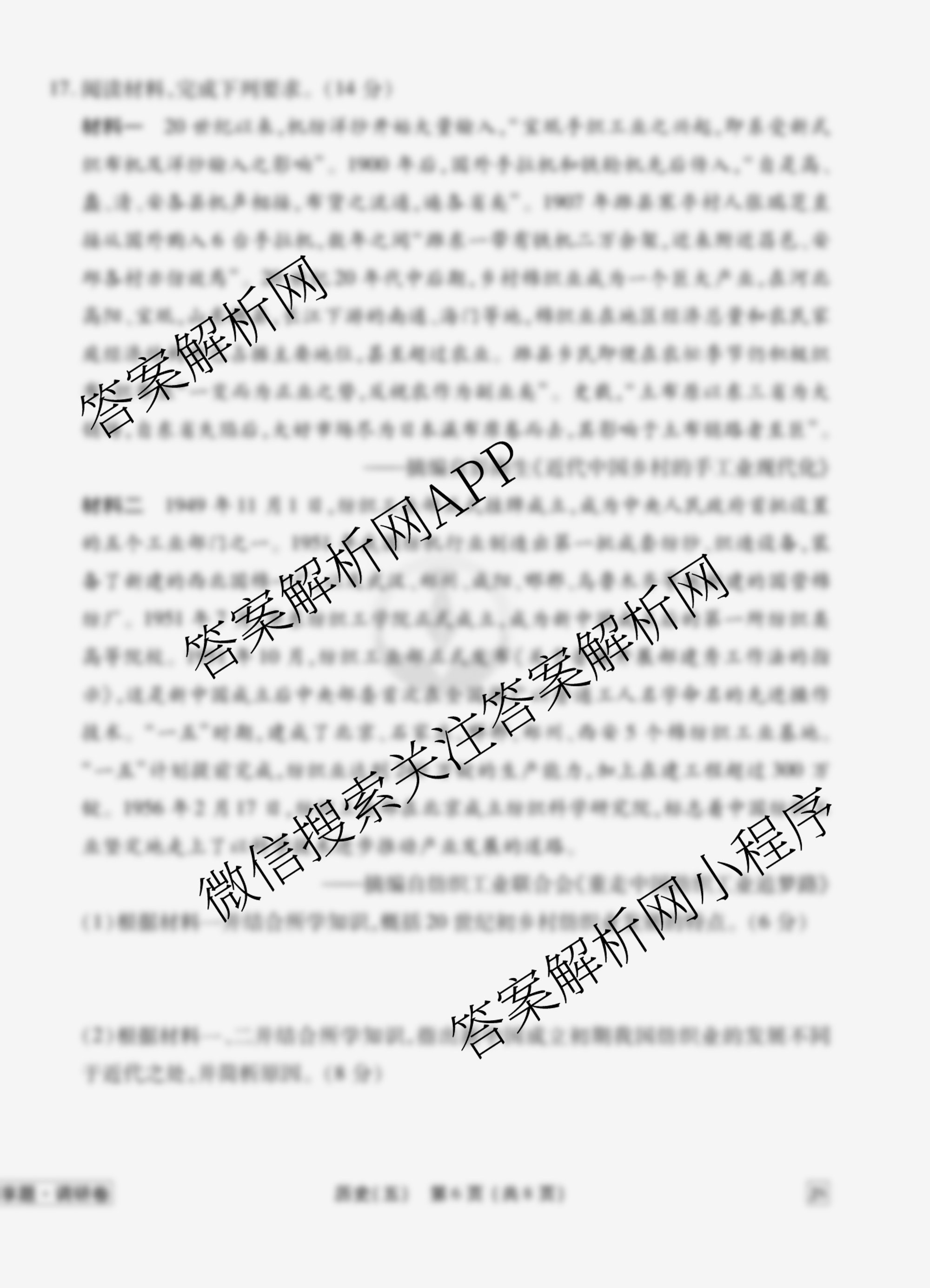 - [衡水金卷先享题]调研卷2026年普通高中学业水平选择性考试模拟试题(五)5历史(FJ)答案