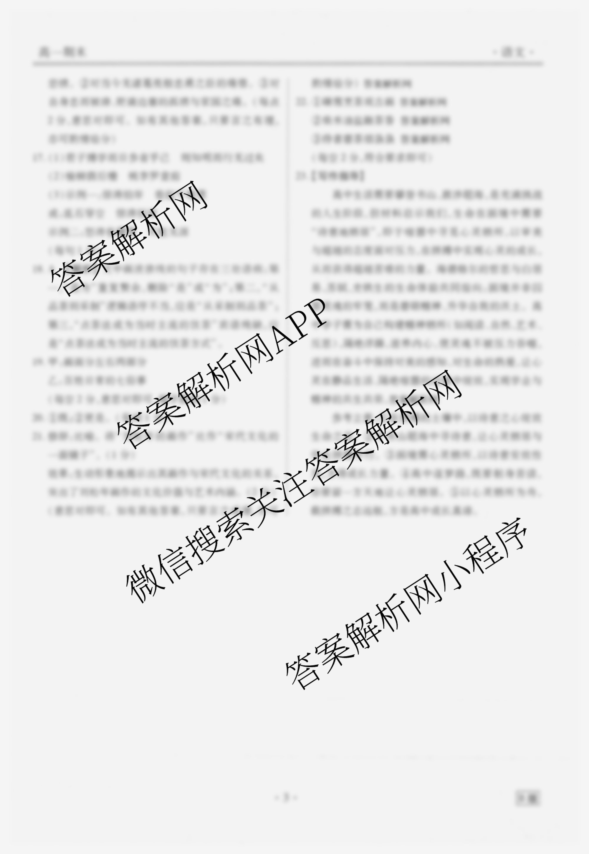 - 2025~2026高一(衡水金卷先享题)月考卷学年度上学期年级期末考试语文(B版)答案
